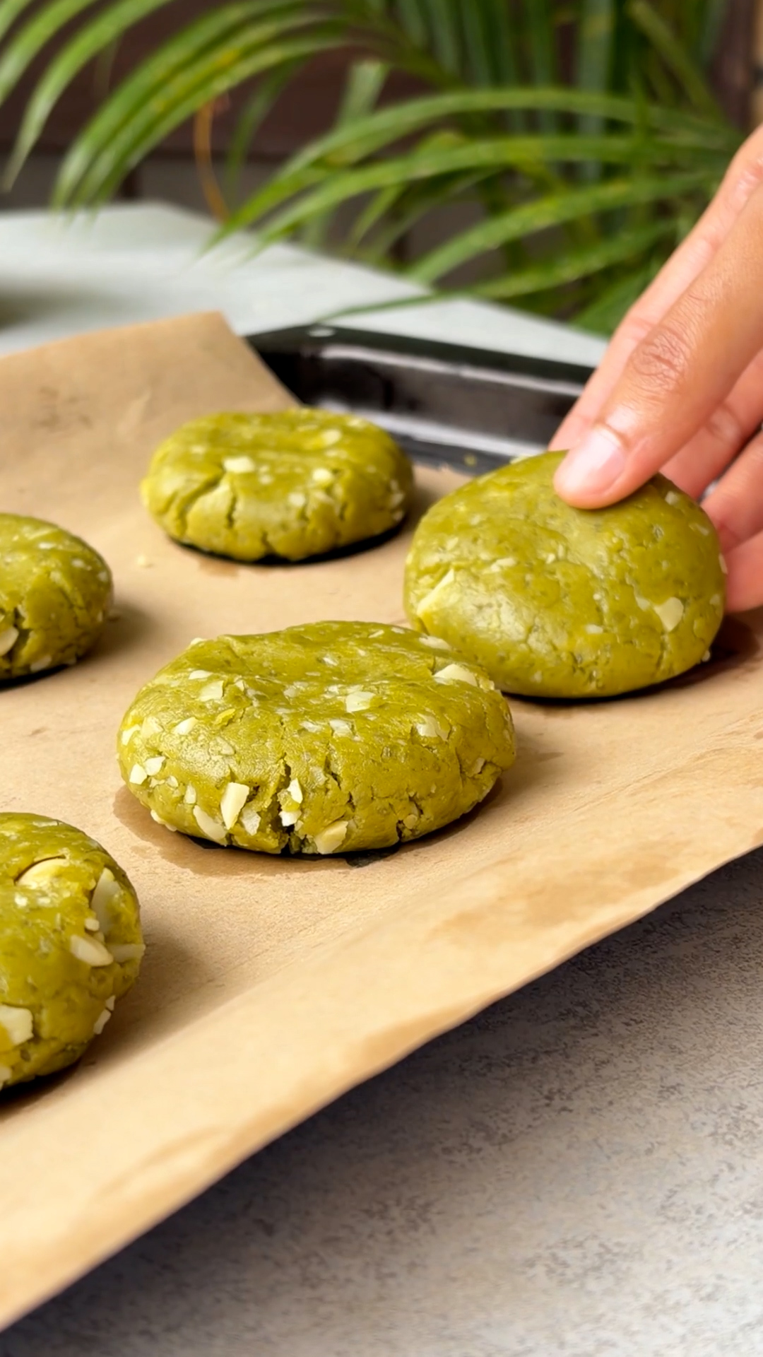 - Scoop dough into small balls, flatten slightly, and place on tray.