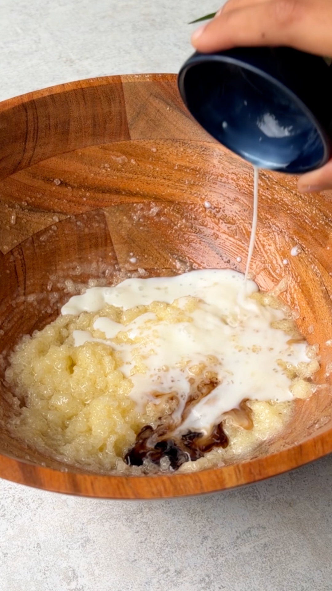 - Add vanilla extract and milk; mix again.