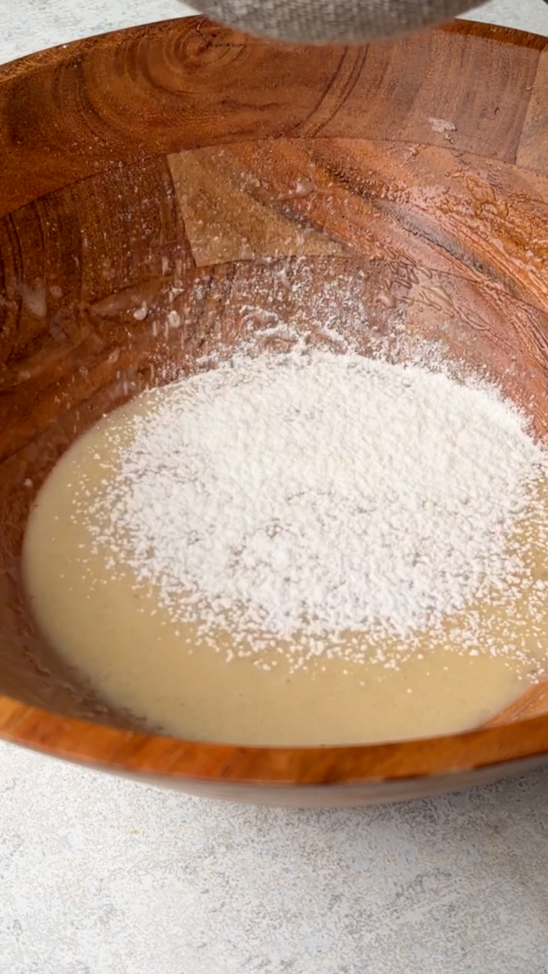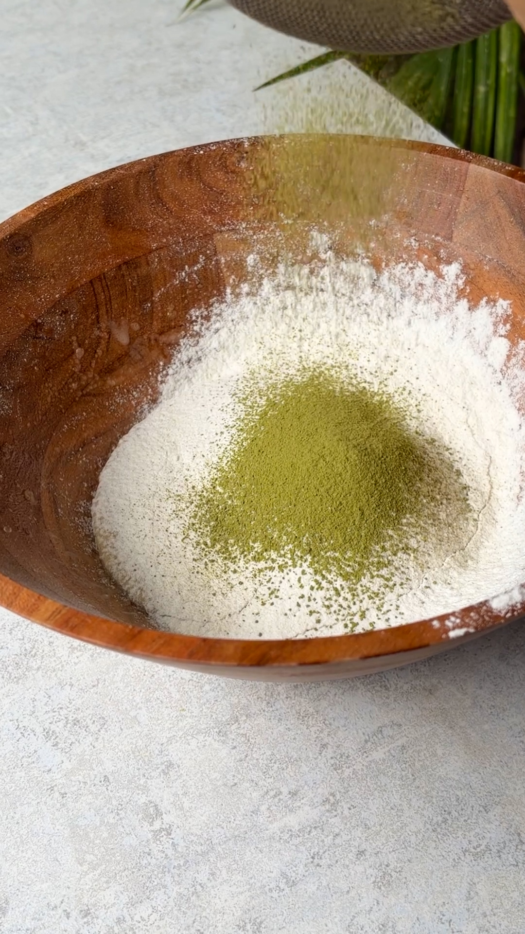 - In another bowl, sift flour, matcha powder, baking soda, and baking powder.