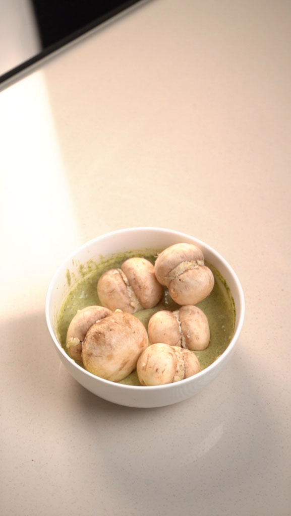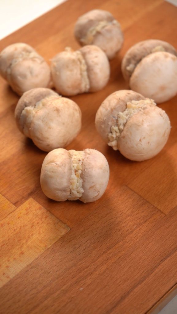 - Sandwich 1½–2 tbsp filling between two mushroom caps and chill for 20 minutes.