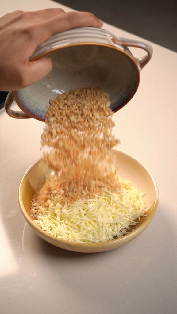 - Mix cheese, fresh cream, chopped macadamias, salt, and pepper to make a creamy, firm filling.